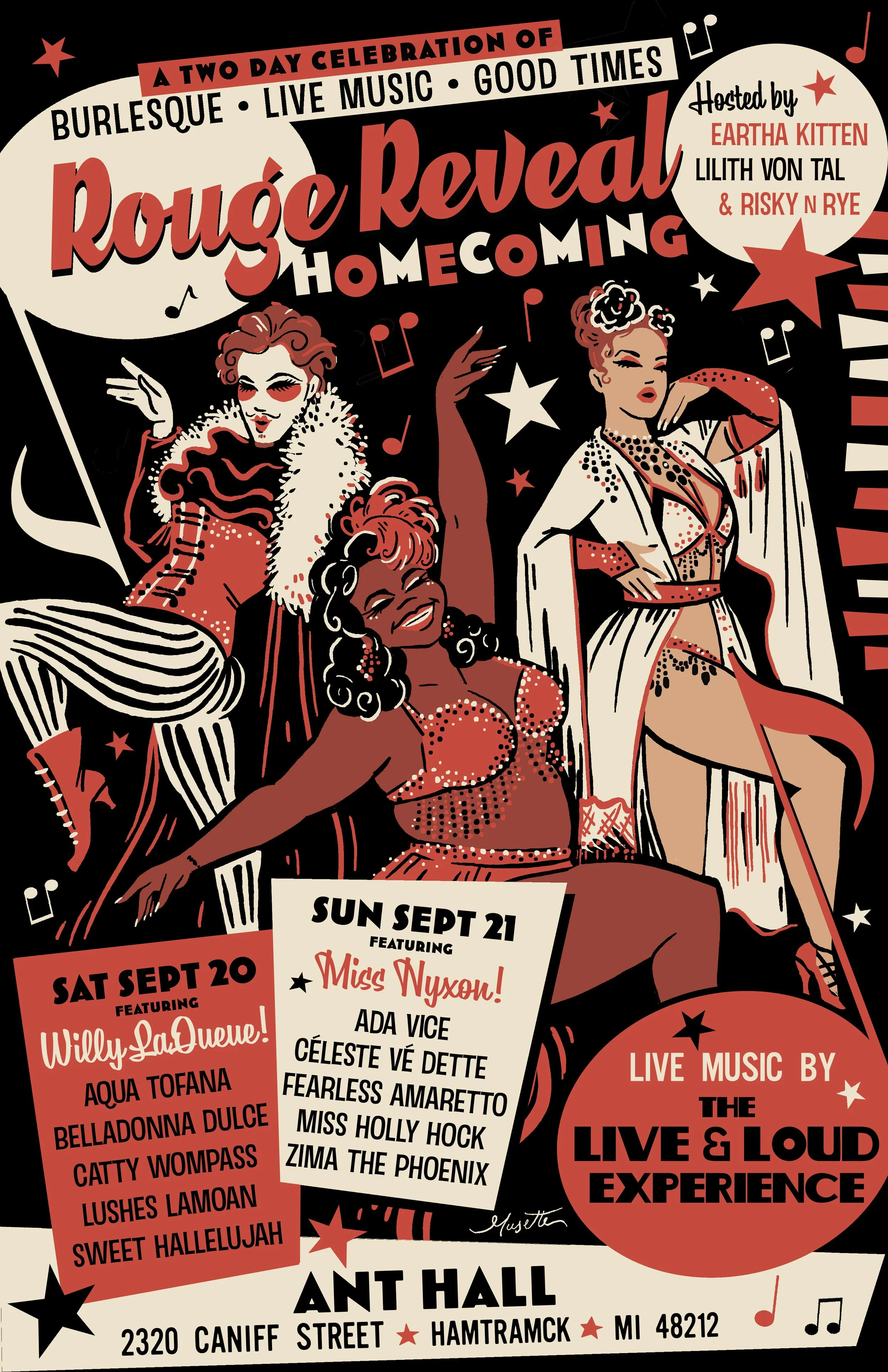 Presented by local burlesque star Eartha Kitten, Detroit’s best (voted by Metro Times readers in 2024), livest, & loudest burlesque show makes its return to Ant Hall! Rouge Reveal remains an unforgettable experience featuring the best burlesque all performed to LIVE MUSIC by the Live & Loud Experience. A dazzling show that has wowed audiences near and far, join us here at home for BURLESQUE ✶ LIVE MUSIC ✶ GOOD TIMES!